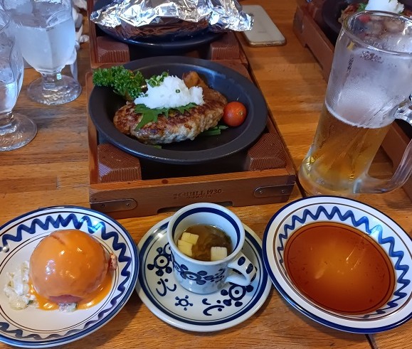 やや早いランチ会(ブランチ)は、上野駅構内にある「つばめグリル上野店」で、ハンバーグ・セットなどのつばめグリルの定番を食べ、早くも生ジョッキ―でわいわいがやがやと…。
