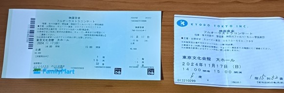 家に忘れたチケット(左)と会場で手書きで座席番号を書いてもらったチケット。