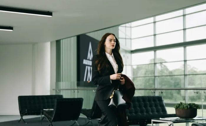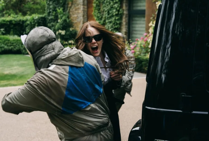 ■ミシェル:エマ・ストーン…製薬会社のカリスマCEO。マックイーンのスーツ、クリスチャン ルブタンの靴、サンローランのバッグに愛車はベンツ。頭脳明晰で⼼理学の学位も持っており、誘拐犯たちをなんとか言いくるめようと抵抗する。